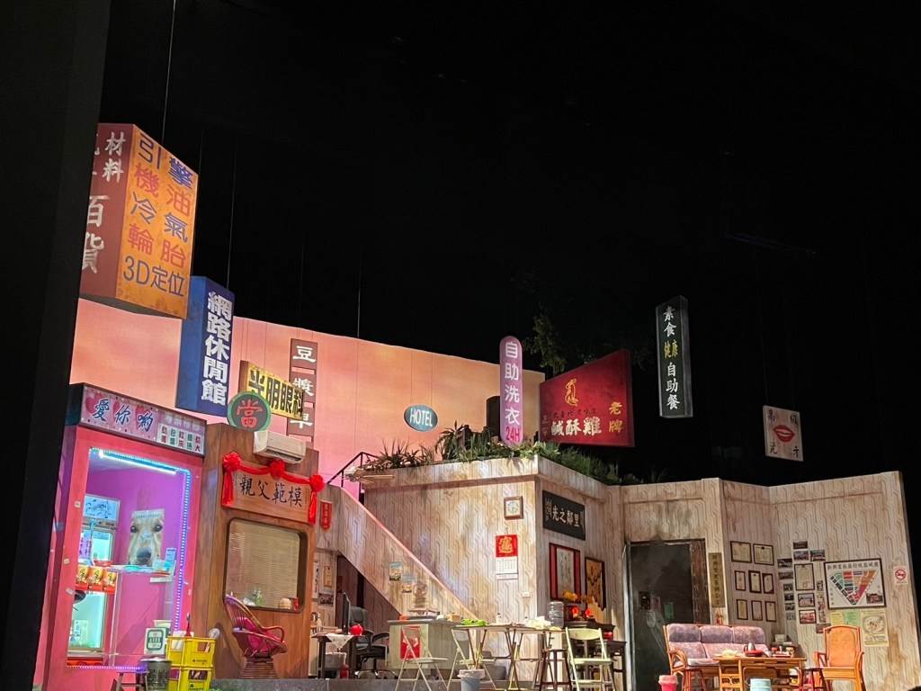 這次我特別喜歡的是舞台設計,由紐約大學研究所畢業的陳慧所負責。舞台劇要一景到底我認為是很難的,在情節的轉換之下、通常佈景會發揮極大的功能。這次佈景將主要的辦公室、家中客廳結合,甚至將檳榔攤與墓碑很巧妙的融合在一起,我真的覺得非常佩服,也覺得非常好看。